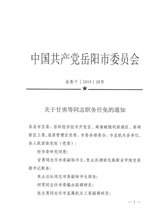 关于甘勇等同志职务任免的通知