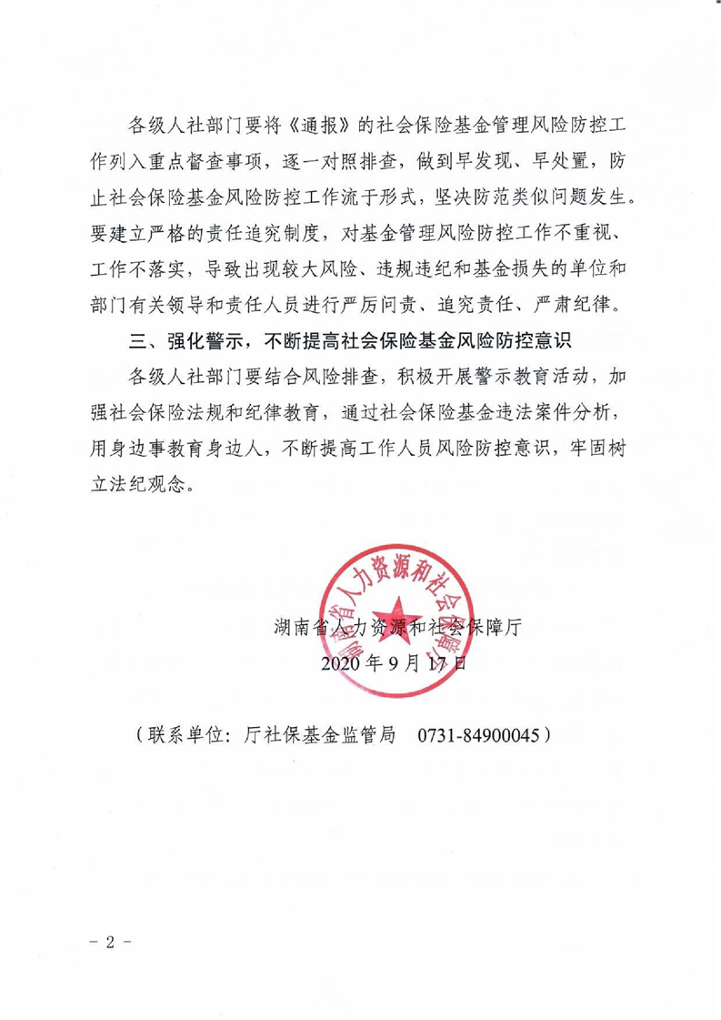 转发《人力资源社会保障部办公厅关于社会保险基金管理风险的通报》的通知