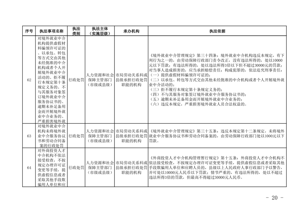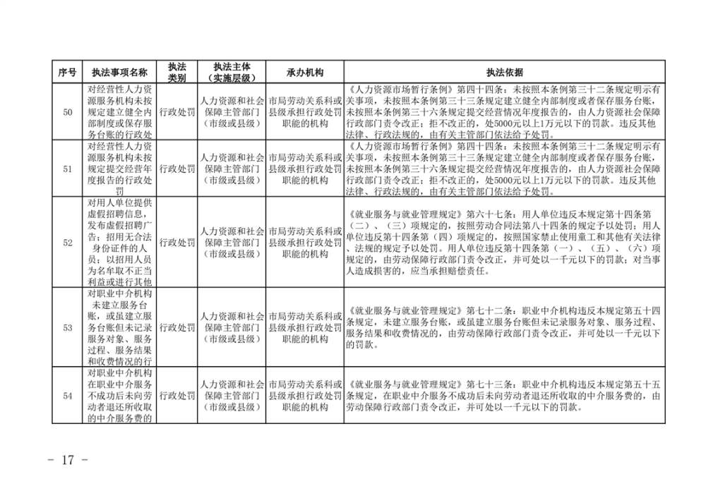 岳阳市人力资源和社会保障领域行政执法事项目录清单