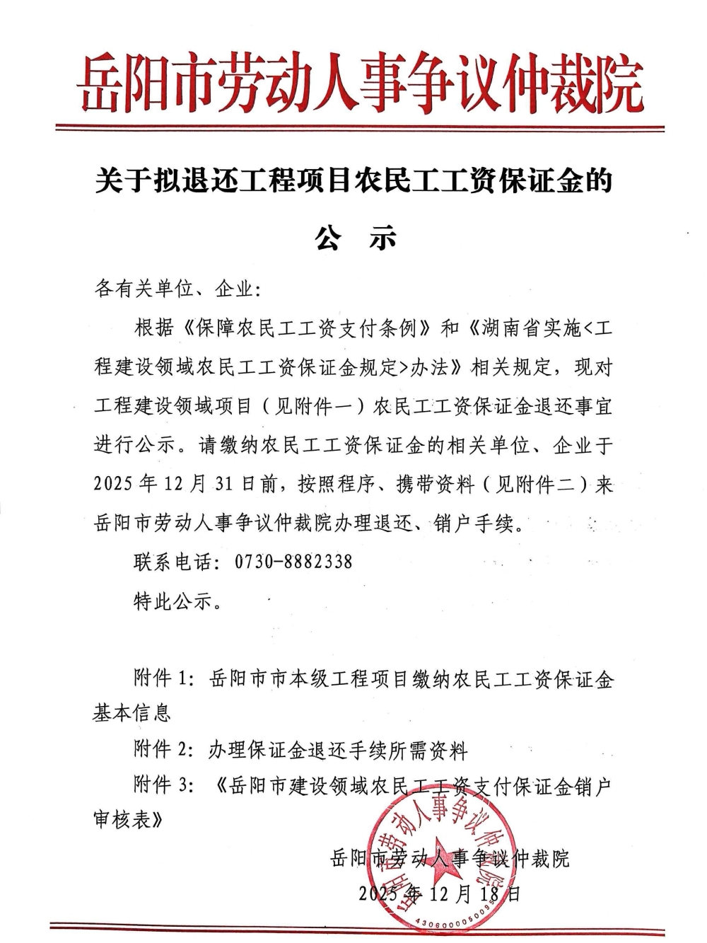 关于拟退还工程项目农民工工资保证金的公示附件.docx