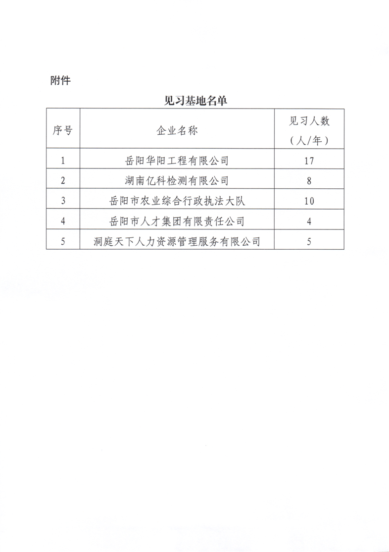关于认定岳阳华阳工程有限公司等5家单位为岳阳市就业见习基地的通知