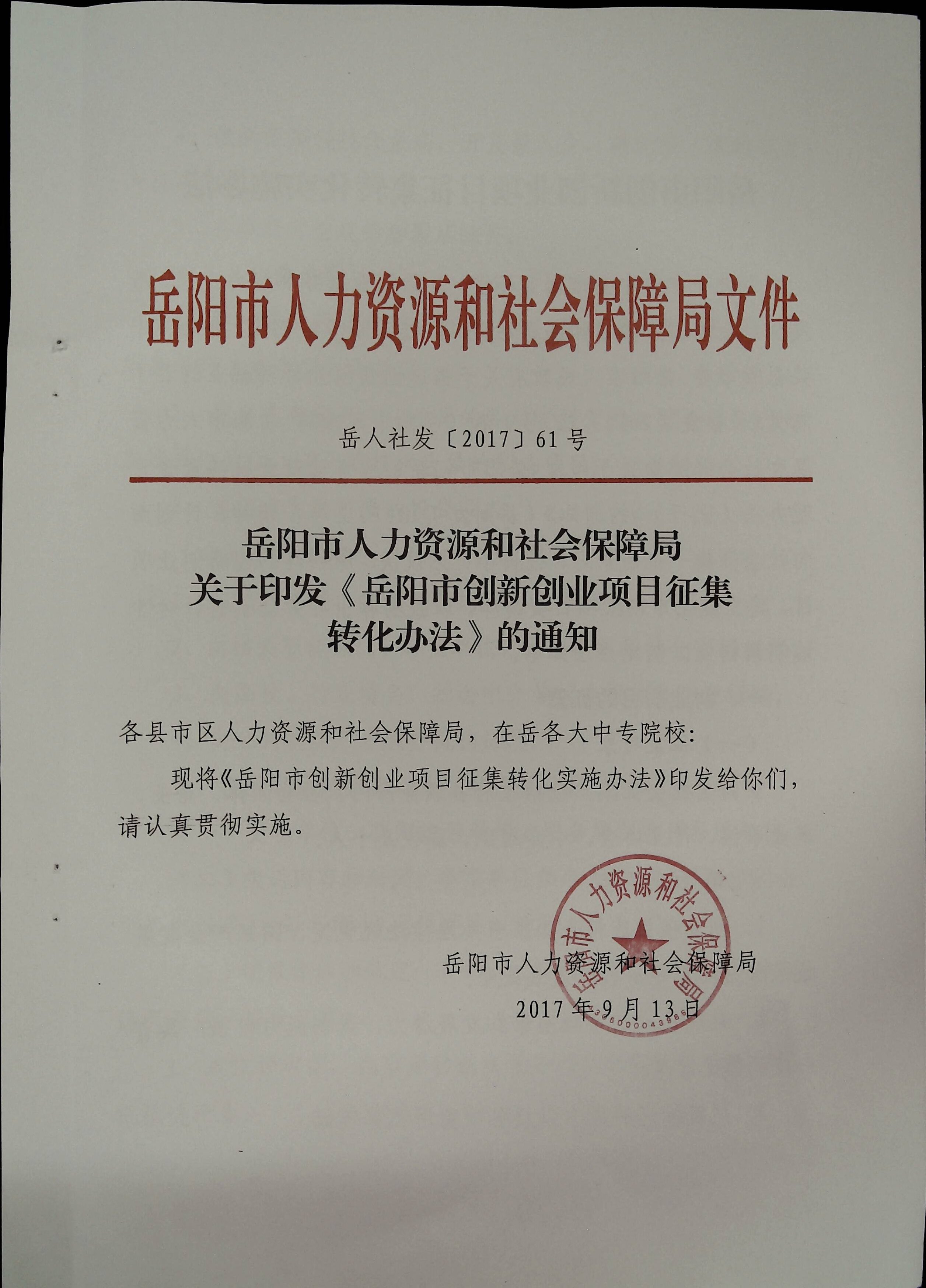 关于印发《岳阳创新创业项目征集转化办法》的通知
