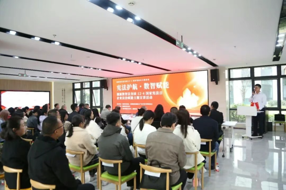 2025年12月4日是第十二个国家宪法日,为深入学习宣传贯彻习近平法治思想,推动宪法深入人心,12月2日下午,湘源数智法务园举办 “宪法护航・数智赋能——12・4 国家宪法日企业法治赋能主题宣讲活动”。本次活动由岳阳市司法局、岳阳临港高新区管委会指导,湘源数智法务园主办,岳阳市湘北公证处、速猿科技(湖南)有限公司联合承办,近百位司法系统代表、临港高新区企业代表、湖南理工学院法学院师生共同参与。