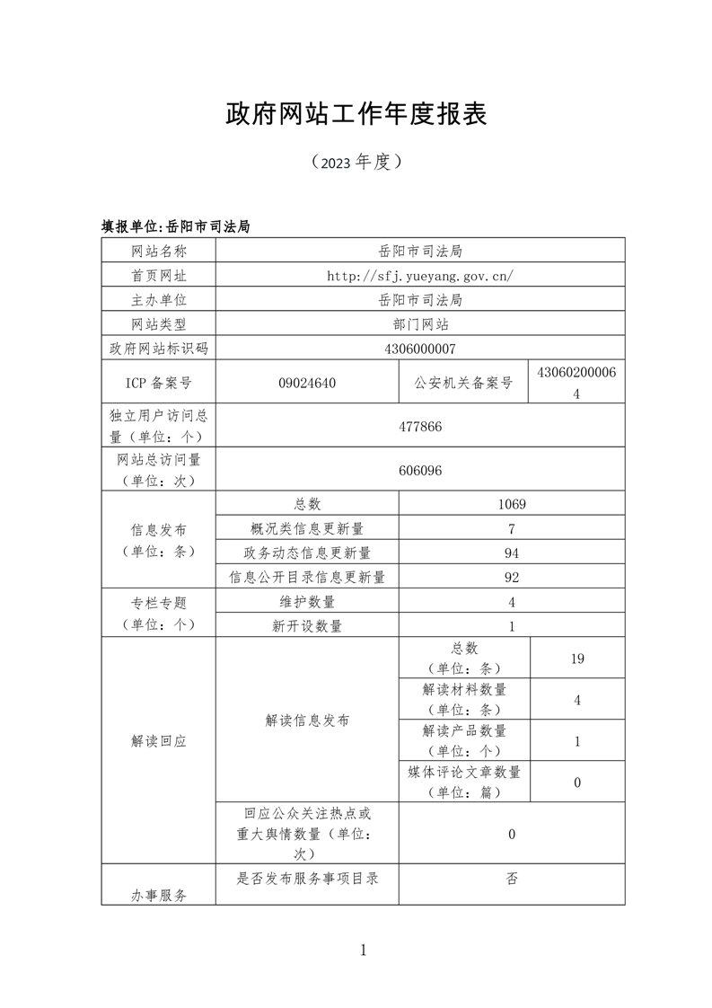 岳阳市司法局2023年度政府网站工作年度报表