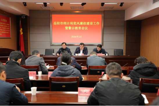 3月18日,岳阳市统计局召开党风廉政建设工作暨警示教育会议,传达学习习近平总书记关于在全党开展树立和践行正确政绩观学习教育的重要指示,总结2025年党风廉政建设工作,部署2026年重点工作任务。局党组成员、副局长刘保良出席会议并讲话,局党组成员、副局长袁丹宁主持会议。