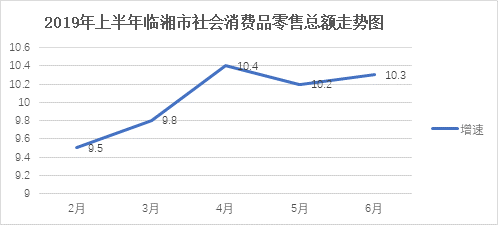 2019年上半年临湘市消费品市场运行总体稳中向好,全市实现社会消费品零售总额402615.8万元,同比增加37431.7万元,增长10.3%。