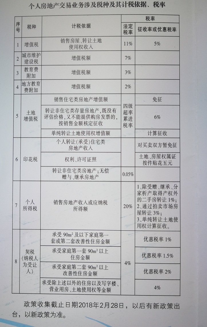| 回复内容: | 您好,目前我市个人房地产交易业务涉及税种及其计税依据、税率如下图,您提到的购房契税为表中第8项,请您根据所购房屋情况对照查询。 |