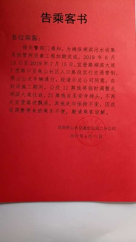 尊敬的市长,您好! 我今天又接到公交公司的电话,这是四封信,现在这件事好像在踢皮球,根本不想解决问题,现在又回到公交公司,公交公司的回复就是上面的决策,他们也无能为力,要住在飘尾、党校、岳阳中学附近的居民自己克服困难,不知道这是那些领导作的决定,如果路封死了,住在里面的市民怎么出行??这就是政府行为吗?????现在我都不知道找那个部门,修污水管网是好事,那数千居民的出行怎么办?施工不能影响正常的出行,难道不能半封闭施工或临时修一道转供公交车通行专用道,因为1个月时间太长了,那的出行就不管不问了,我真不知道是哪个部门做出来这样的决定?11路车改道已经给党校附近的居民和学生带来很大不便,很多居民已经怨声载道,不知道找那个部门投诉?交警大队、公交公司、市政公司?难道市民出行就这么难解决吗?? |
