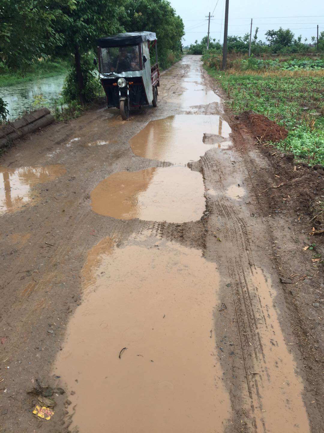 我们渔业组是1993年冬由300亩良田开挖改成鱼池后组成的。作为渔场,现有30个鱼塘,近30户,上百人口。 如今国家实施人居环境改造,强化乡村交通建设,可我们渔场却没有得到任何道路改造项目,下雨天根本无法出门,老人出行、孩子上学成了第一大难事。