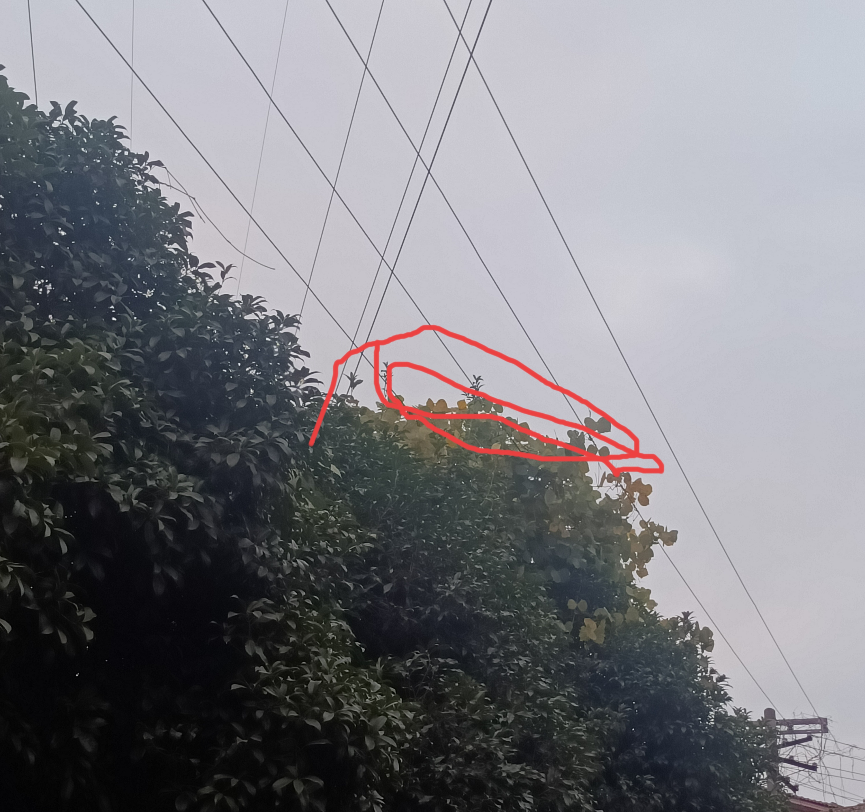 标题: 植物长高与高压线连在一起,请电力部门尽快处理。