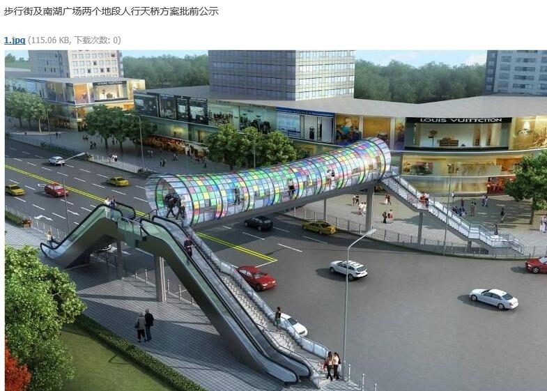 | 内容: | 尊敬的市领导及各相关局委办领导: 谢谢您百忙中查阅此信。本人在红网论坛看到某岳阳网民发布的“步行街及南湖广场两个地段人行天桥方案批前公示”帖,其中写明了地点是在东茅岭步行街和南湖广场附近准备建天桥的规划,相关图照见附件,从效果图上看此天桥都建了上下扶梯及多色过道顶棚,看上去还是不错的。 我的建议是此桥要建就要建好点,特别是电梯方面及过道顶棚所采用材质应该高档点,保证二十年不变色不坏,以优质形像工程建设,作为岳阳一道新的风景线,再上下扶梯是带电控制的,应该也有顶棚遮挡为好。 我想说的重点是质疑处,质疑是拟建的地址,作为对岳阳市区熟悉的人都知道,岳阳市人流最大,过往人行道最多是东茅岭、国大十字路口,花板桥十字路口、沃尔玛巴陵中路。而拟建规划中人流相对只有以上地区几分之一的南湖广场丁字路口,过个十几米的马路直接走过去更省事,有几个行人会去天天一上一下走天桥,难道都没坐过扶梯,这天桥可不是游乐设施,以后可能成晒太阳的空桥啊。加上南湖那路不是主干道,车流人流与巴陵中路,岳阳大道,土桥路没法比,相对这三个地方更需要这种过街天桥架设,方便更多市民出行,让部份机动车道可以封闭快速通行,以达到缓解交通压力的目的。 再一个架个天桥在南湖广场正面,更加影响了从南北两方向看南湖广场或看南湖大道方向的视觉,被一天桥所挡,一副美丽的山水画中间被一桥所挡了。从这方面看南湖广场正面建此天桥,也不如在花板桥十字路口、国大十字路口、沃尔玛巴陵中路段更加便民和实际。 以上质疑及建议敬请重视。