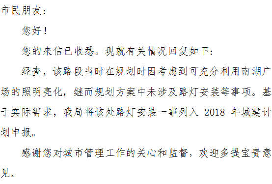 标题: 请给南湖广场东边的龙舟路安上路灯