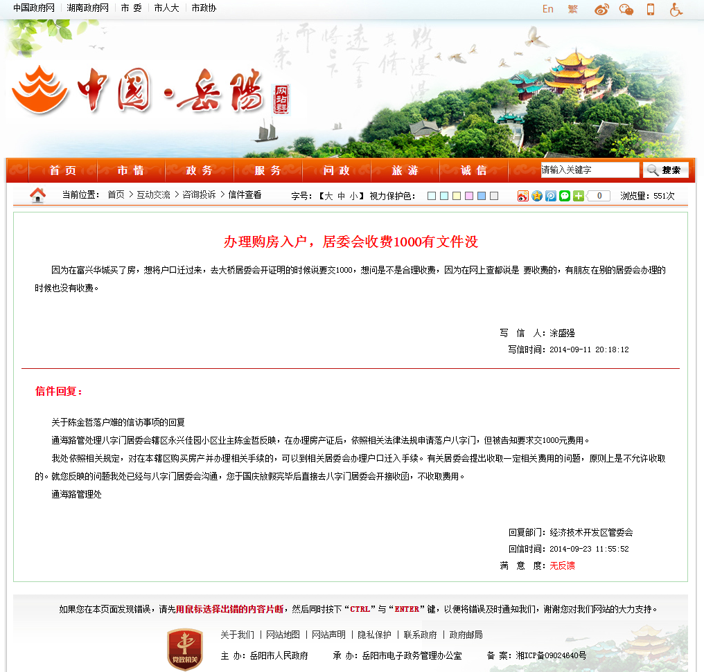 | 回复部门: | 岳阳经济技术开发区管理委员会 |