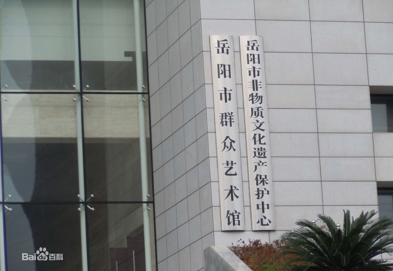 岳阳市群众艺术馆的历史可追溯至上世纪六十年代。1964年建立的“岳阳地区文化馆”与地区专署文教科合署办公,“文革”期间机构被撤销;1971年成立岳阳地区工农兵文艺工作室;1976年恢复岳阳地区文化馆建制;1984年改称岳阳地区群众艺术馆。1983年岳阳市升格为省辖市后,原岳阳市文化馆改称岳阳市群众艺术馆。1986年,地、市群众艺术馆合署为岳阳市群众艺术馆,现直属于岳阳市文化广电新闻出版局,是岳阳市公益性文化事业单位。岳阳市群众艺术馆承担着全市的“文艺培训、文化宣传、群众文化活动组织、群众文艺创作及各类社会文化活动辅导、群众文艺理论研究、民族民间文化艺术遗产收集整理与保护、编辑出版综合性文艺刊物”等主要工作职能。
