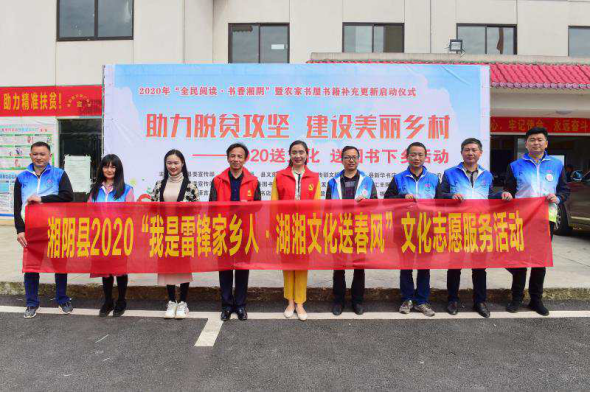 送走冬日的料峭寒风,迎来四月的春风暖阳。4月14日上午,岭北镇芦花村村民服务中心收到了一批文化的“种子”、精神的“食粮”,送来它们的正是湘阴县文化志愿服务队的志愿者们。正是经过这些文化“耕耘者”的不懈努力和多方联系,由湘阴县委宣传部、县文明实践中心、县新闻出版局、县文旅广体局、县新华书店联合主办的“助力脱贫攻坚、建设美丽乡村”2020年湘阴县送文化、送图书下乡活动在这里成功启动。启动仪式在孩子们的《岳阳楼记》朗读声中拉开序幕。随后,文化志愿服务队队员向岭北镇政府转赠了由省委宣传部、省新闻出版局配送的3000余册图书,这些图书将在岭北镇的15个农家书屋“安家”。此外,县图书馆、县新华书店和以湘阴县弘扬书店为代表的爱心企业还向芦花村进行了文化志愿捐赠,为农家书屋和学生们捐赠了300余册图书和学习用品。捐赠完成后,志愿者们帮助村民和孩子们移书入库、上架、整理、分类,村里的农家书屋焕然一新,既充实了农家书屋,也充实了农村孩子们的心灵。