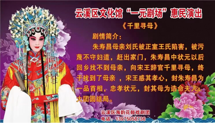 根据上级主管部门和区委、区政府举办“一元剧场”文化惠民工程的要求,通过实地考察云溪区各剧团剧(节)目质量、演出经验等,云溪区文旅广电局通过最终会商,拟定岳阳市云溪区海韵花鼓戏剧团为云溪区2023年度“一元剧场”文化惠民工程供应商,拟演出剧目为:《双官回朝》《千里寻母》《寻儿记》《花烛泪》《海桃冤》《皮秀英四告》《朱买成卖柴》《冯玉莲》《母女讨饭》《钓金龟》《忠孝状元》《包公说媒》等。云溪区文化馆要加强对该剧团服务期间的管理,提升演出质量,确保文化惠民落到实处。
