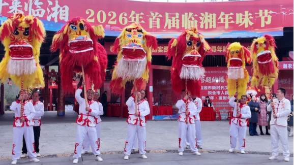 (李金雪)锣鼓一响,年味拉满。2月12日,临湘年味节在红灯笼与欢笑声中火热持续,省级非遗“白羊田天狮”作为开场重头戏盛装登场。队员操控精美天狮,伴着专属鼓点腾跃起舞、气势十足,将吉祥寓意藏于每一个动作,瞬间点燃全场,既为春节奏响喜庆序曲,也彰显着临湘文旅惠民的暖心温度。