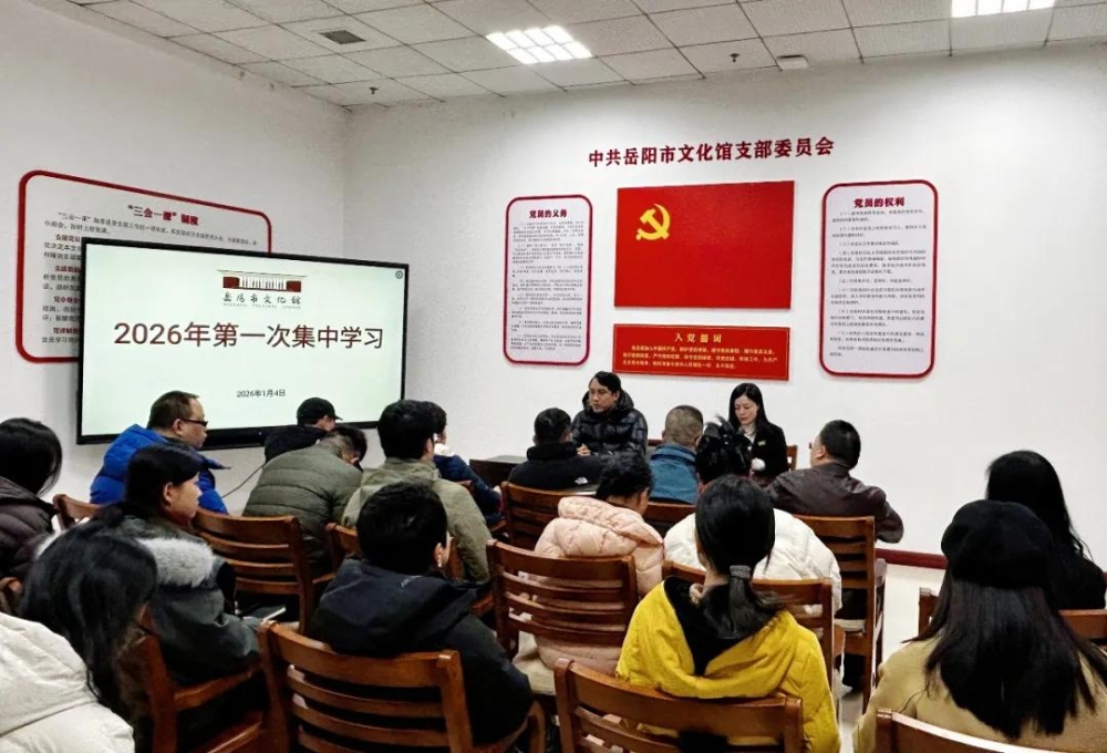 新岁启封,奋进有向。2026年1月4日,为锚定文化赋能岳阳高质量发展的目标,岳阳市文化馆组织全体工作人员开展专题学习会,率先学习领悟 2026 年新年贺词核心要义,再聚焦全市“两会”精神,将思想共识转化为推动群众文化事业发展的实际行动。