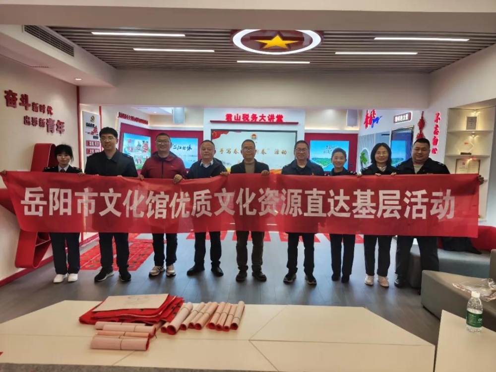 红纸铺展,墨香四溢。岳阳市文化馆“优质文化资源直达基层”送春联活动温暖持续! 我馆艺术总监徐驰老师带队,先后走进君山区税务局、市女企业家协会、老凤祥银楼、洞庭南路历史文化街区及平江县餐饮行业写春联送祝福。