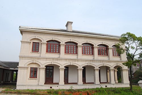 岳州关于光绪二十五年(1899)正式开关,光绪二十七年(1901)三座关房及附属建筑完工,这三栋英式二层建筑呈“品”字形屹立于湖畔山头,分上、中、下三馆,上为帮办公馆,中为办公地点,下为税务司公馆。中、下两馆由于历史原因已被拆除,现仅存上馆,即上洋关。岳州关帮办公馆座东朝西,居山丘之巅,处江湖交汇要冲,地理位置十分优越,是对过往船只进行监督和管理的极好场所。