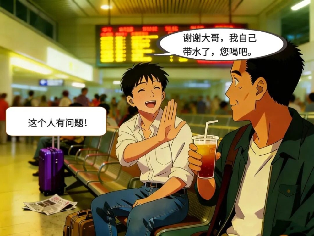 在人潮汹涌的候车厅里