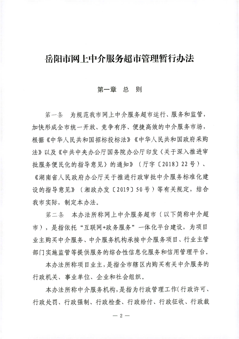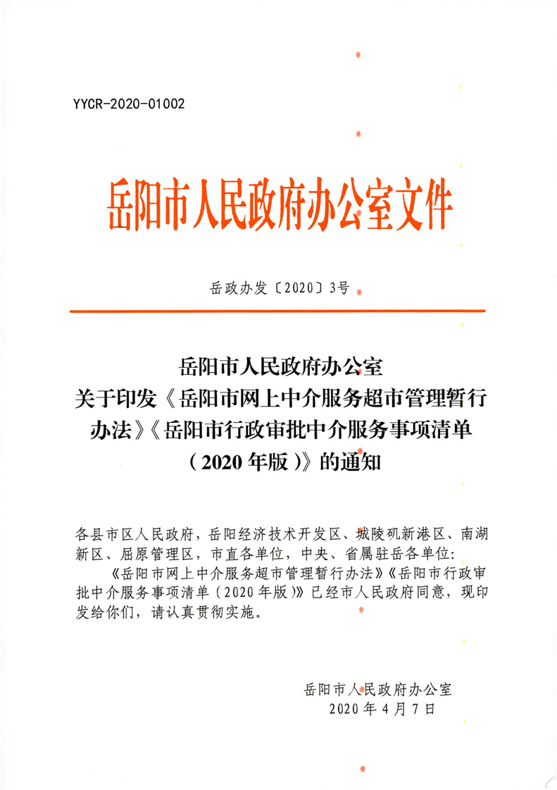 市政府办关于印发《岳阳市网上中介服务超市管理暂行办法》《岳阳市行政审批中介服务事项清单(2020年版)》的通知