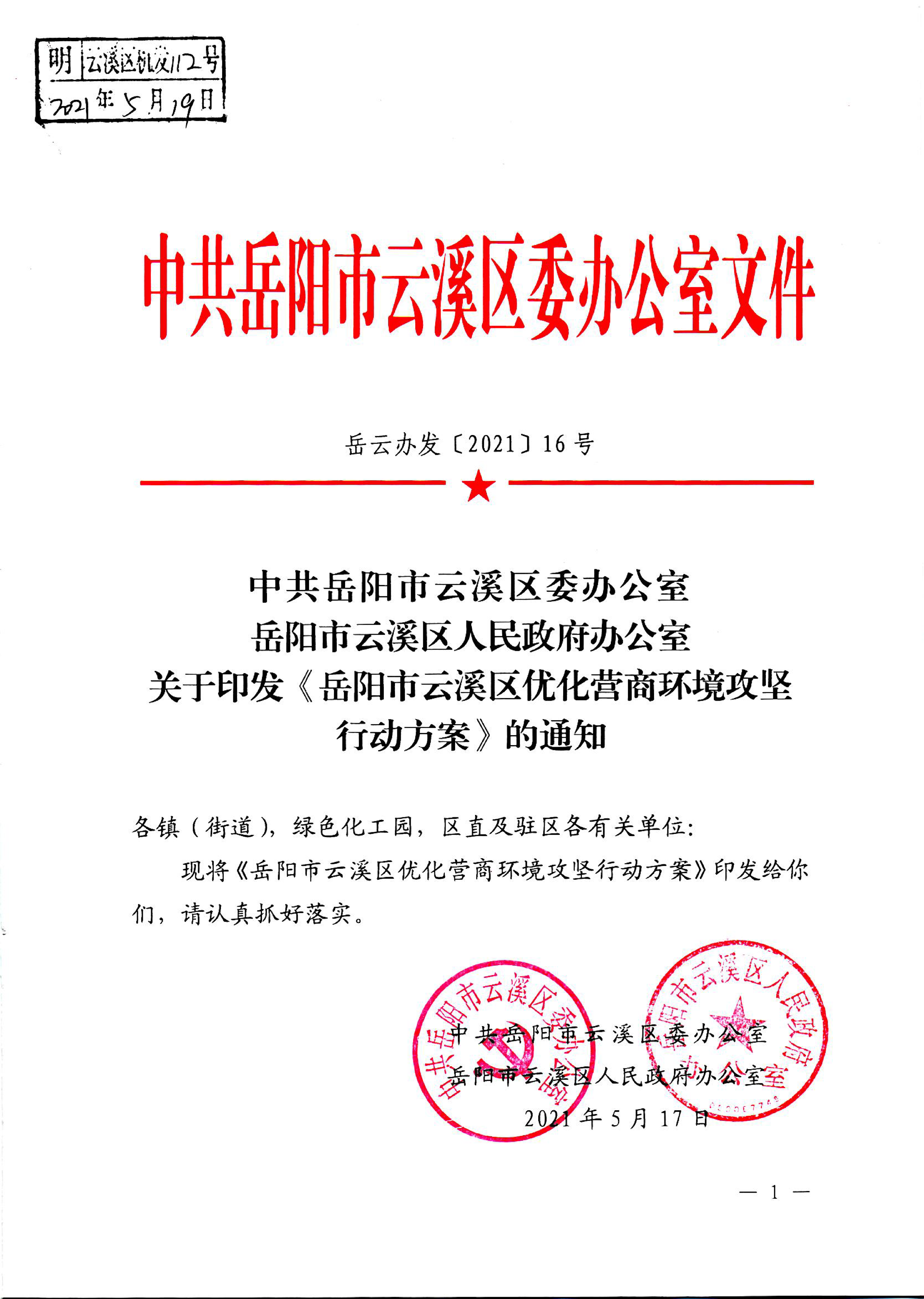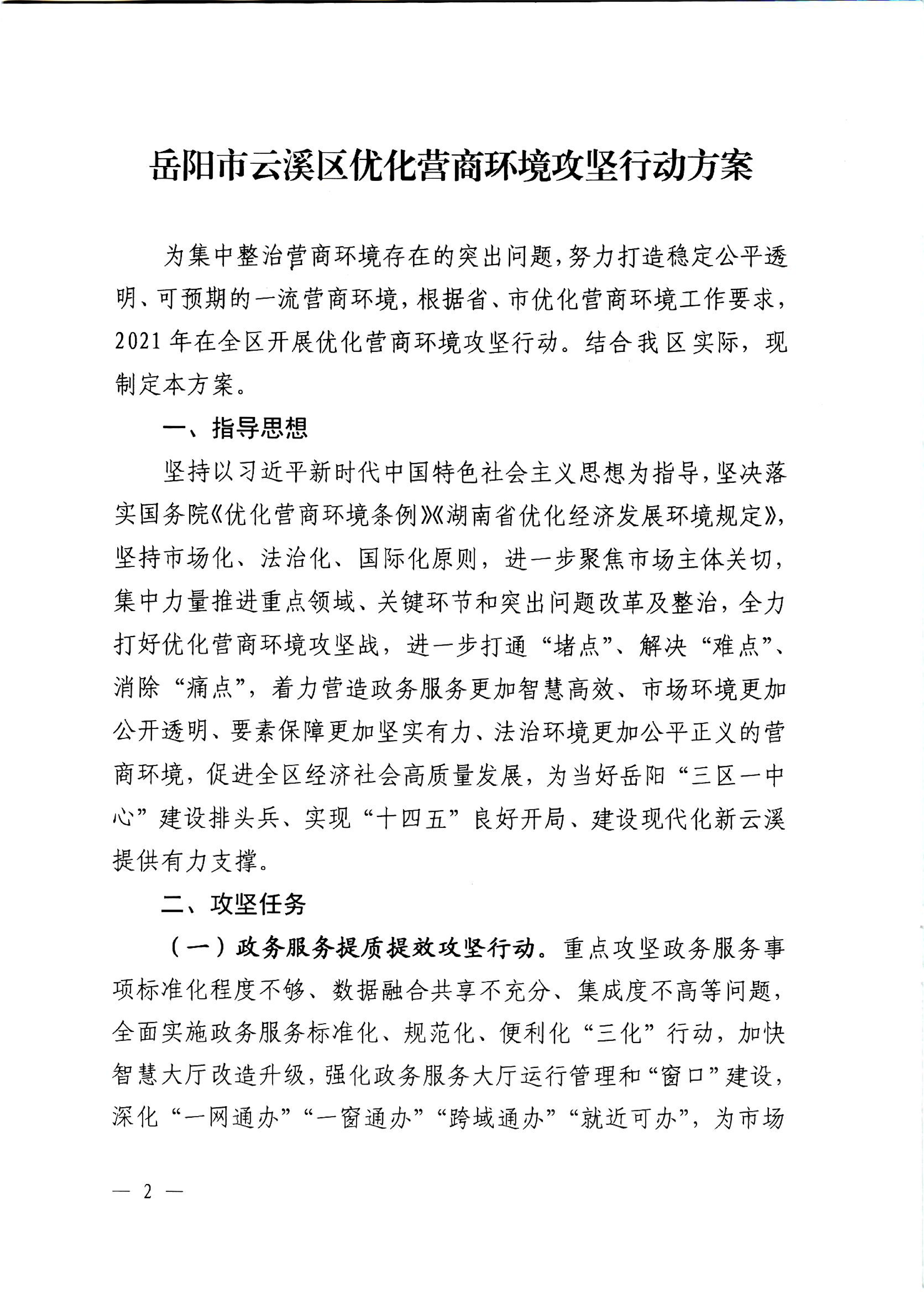 区委办区政府办关于印发《岳阳市云溪区优化营商环境攻坚行动方案》的通知
