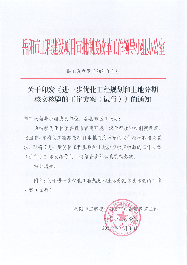 市工改办关于印发《进一步优化工程规划和土地分期核实核验的工作方案(试行)》的通知