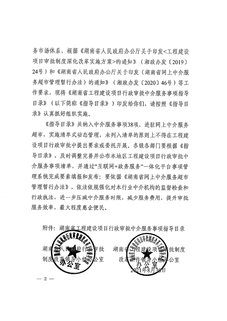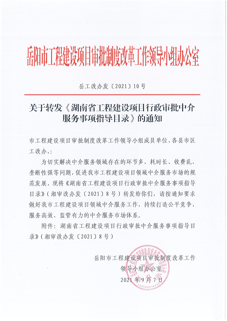 市工改办关于转发《湖南省工程建设项目行政审批中介服务事项指导目录》的通知