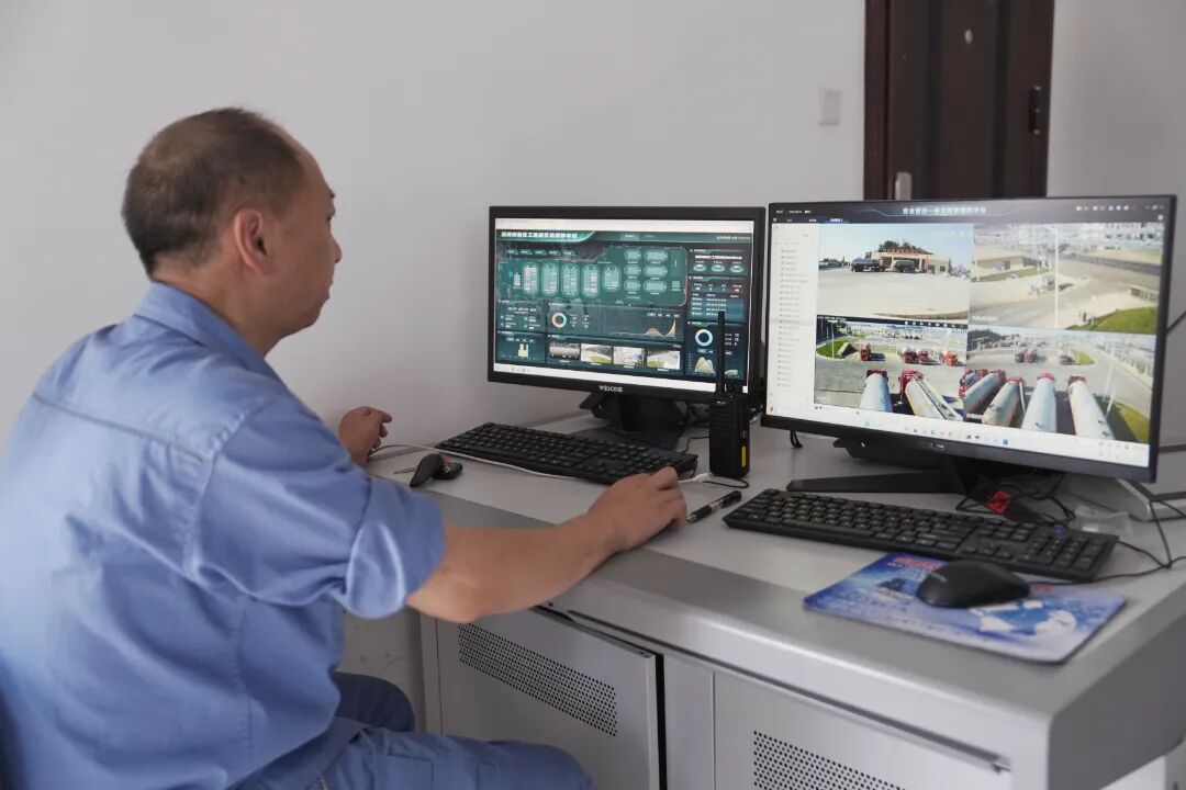 更重要的是,整个场区覆盖着由视频监控、热成像双目云台、火灾自动报警系统、气体监测系统等构成的“智慧安防网”。在智慧指挥中心的中控室内,大屏幕实时显示着车位使用状态、车辆动态、环境监测数据等一切信息。“一旦任何系统发出报警,我们值守的应急处置队伍能在3分钟内赶到现场。”值班工作人员沈勇指着屏幕介绍,此前系统曾通过防爆摄像监测到一名司机长时间未下车,中心立即联系其离车休息,成功避免了一次潜在风险。场内的应急物资仓库、防爆应急仓储间以及稳高压消防水系统等,共同构成了一道从预警到处置的立体安全防线。