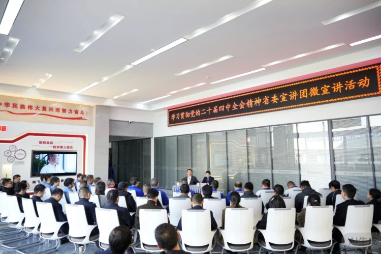 11月24日,学习贯彻党的二十届四中全会精神省委宣讲团走进岳阳绿色化工高新技术产业开发区开展微宣讲活动。省委宣讲团成员、省生态环境厅党组书记廖良辉结合化工园区特点开展微宣讲。