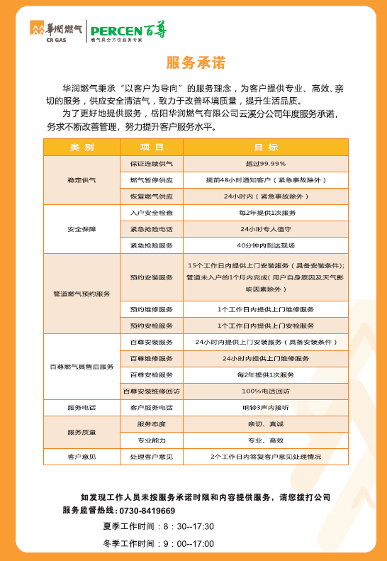 岳阳华润燃气有限公司云溪分公司服务承诺