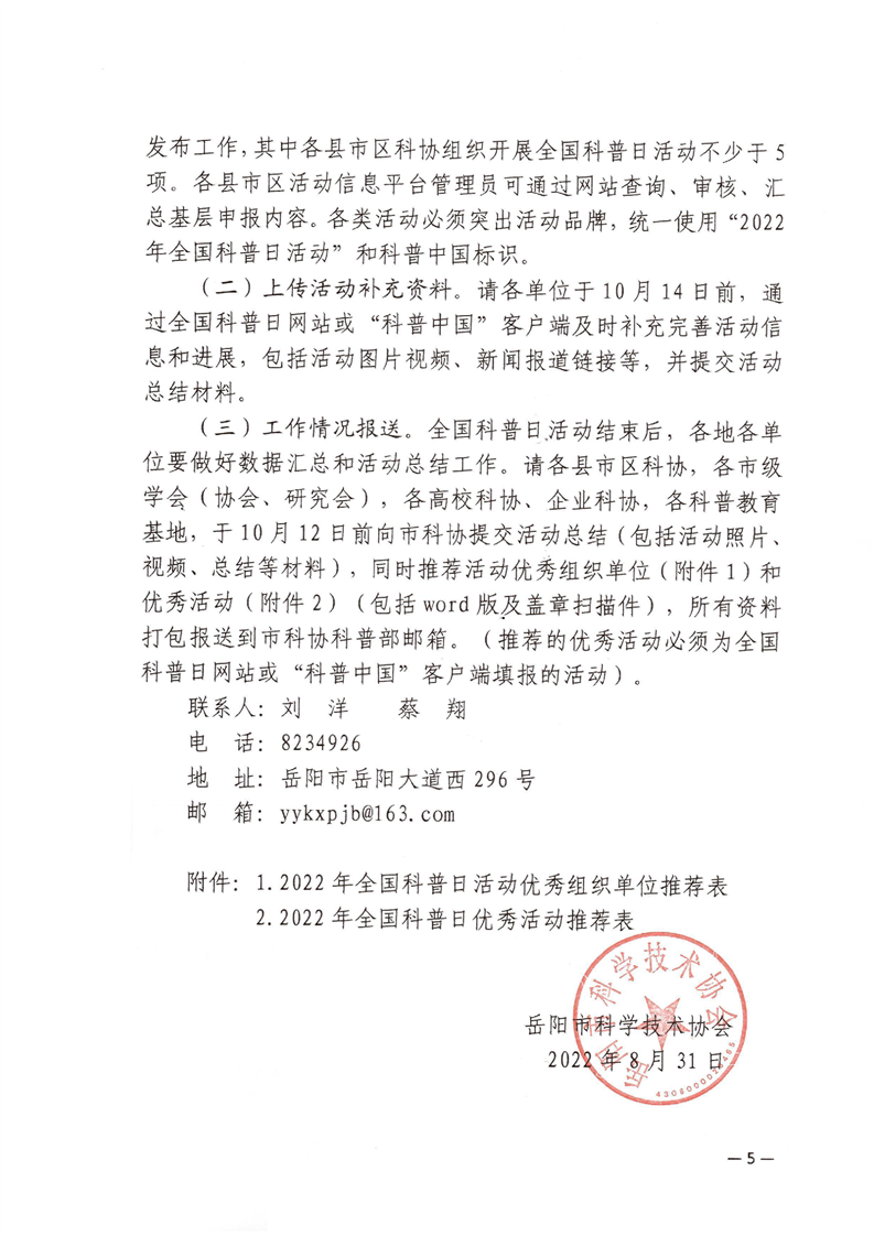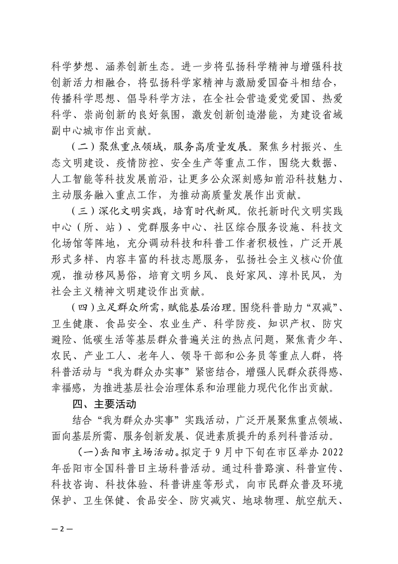 关于举办2022年岳阳市全国科普日活动的通知