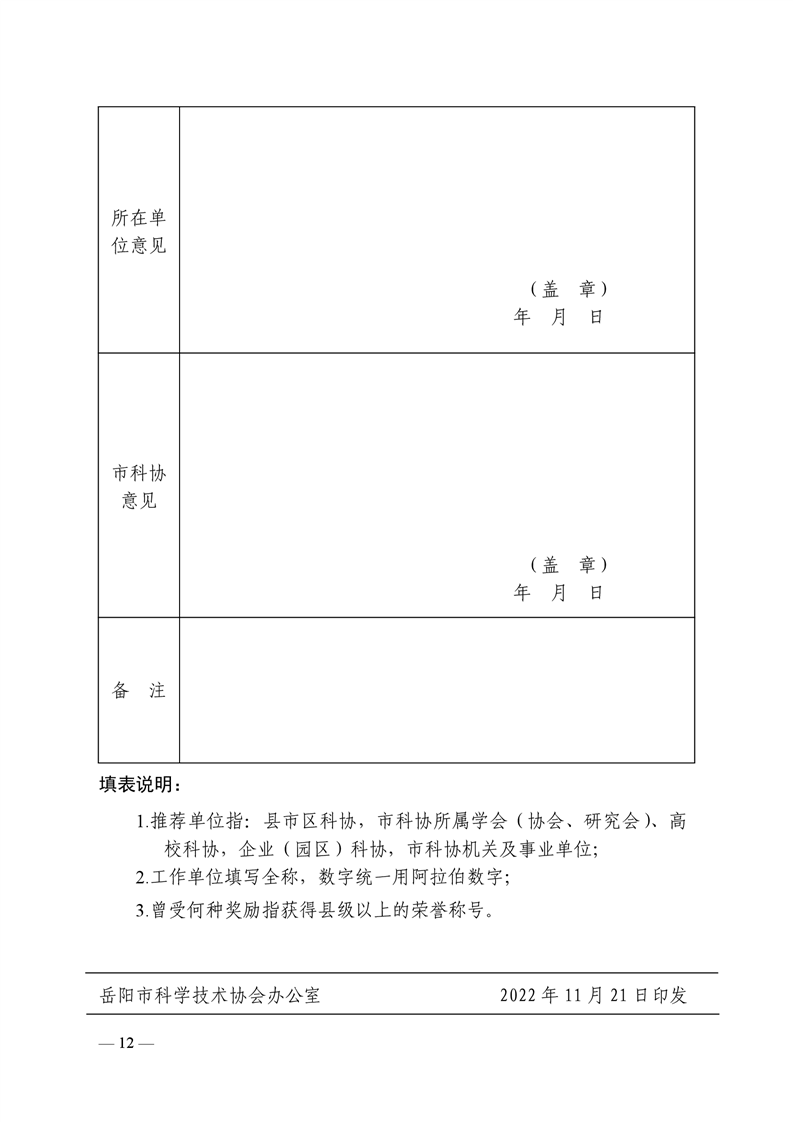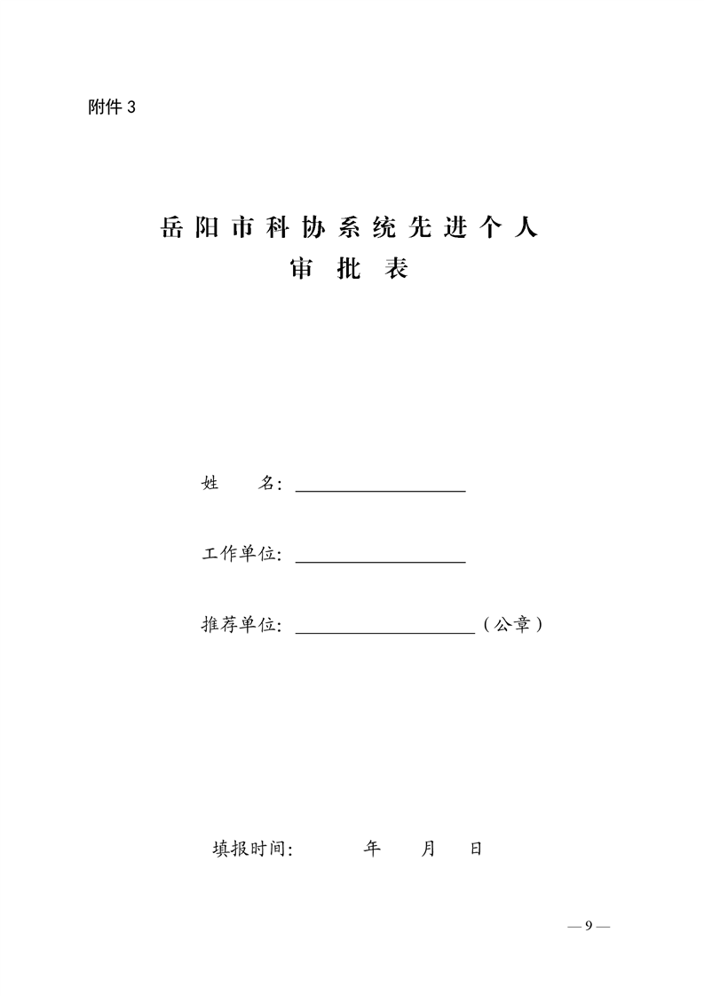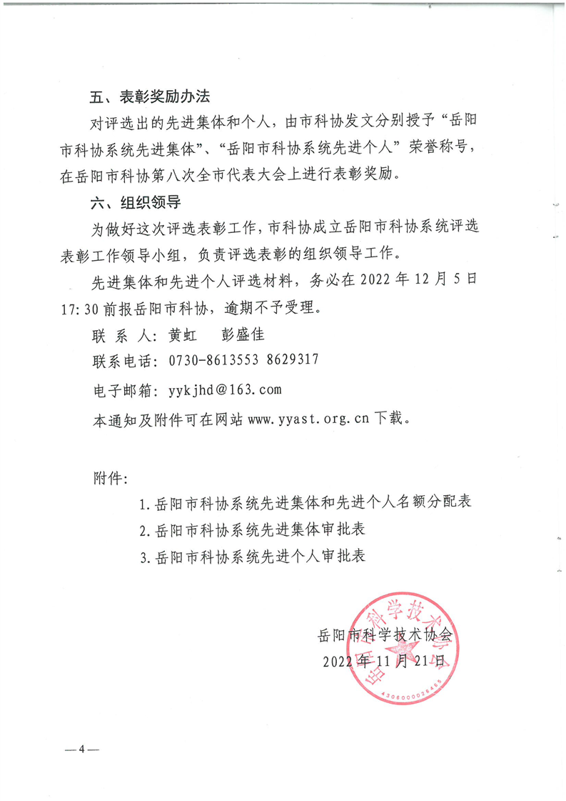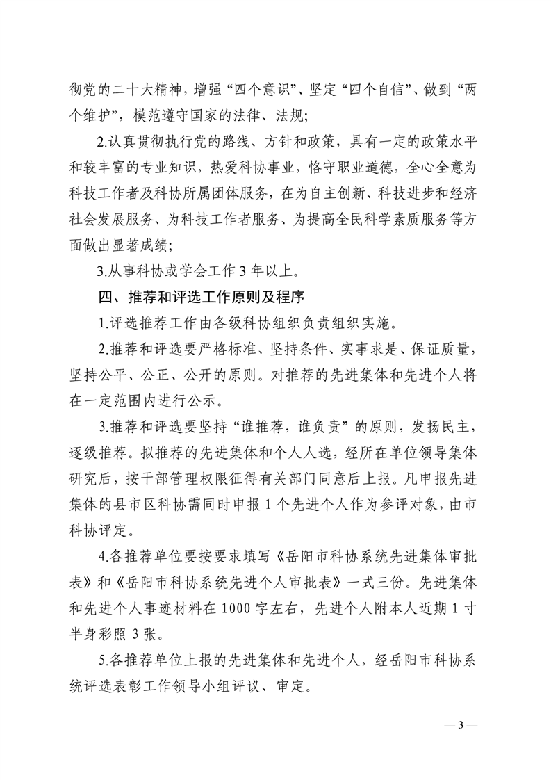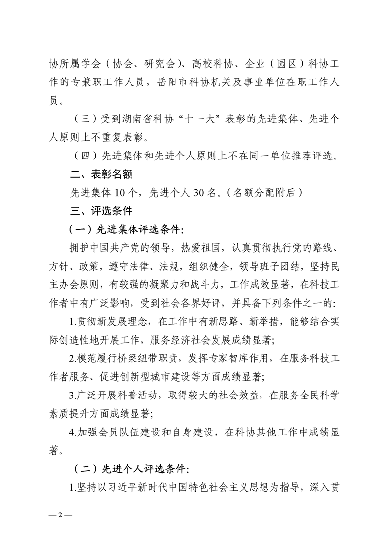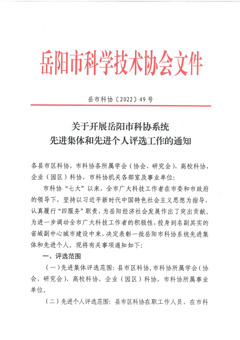 关于开展岳阳市科协系统先进集体和先进个人评选工作的通知