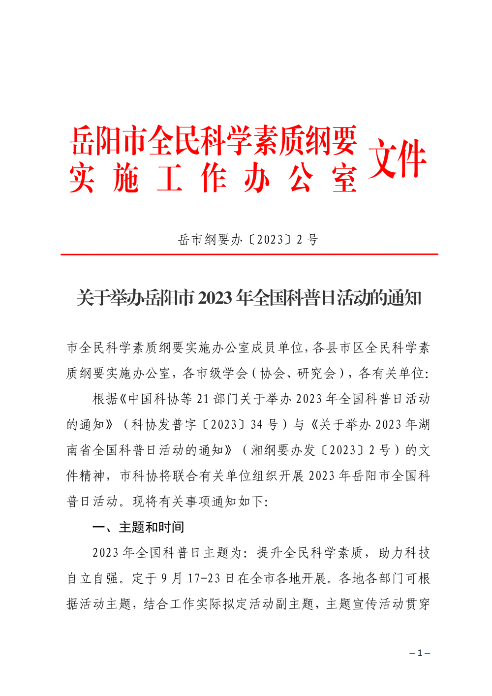 关于举办岳阳市2023年全国科普日活动的通知(纲要办+带红头)(1).pdf