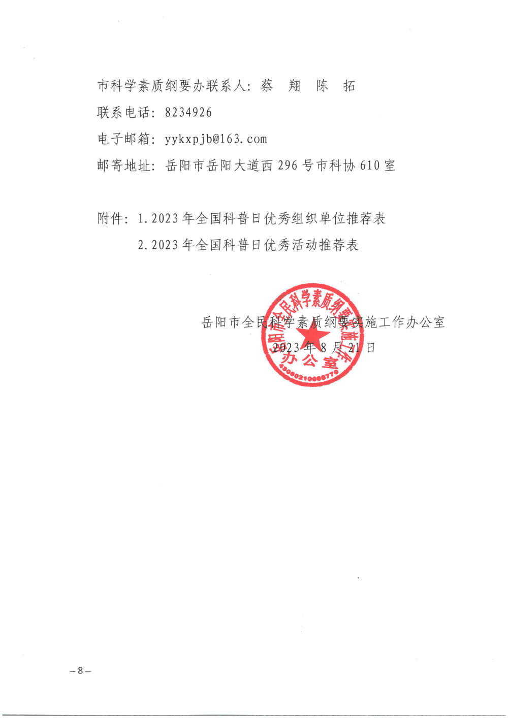关于举办岳阳市2023年全国科普日活动的通知