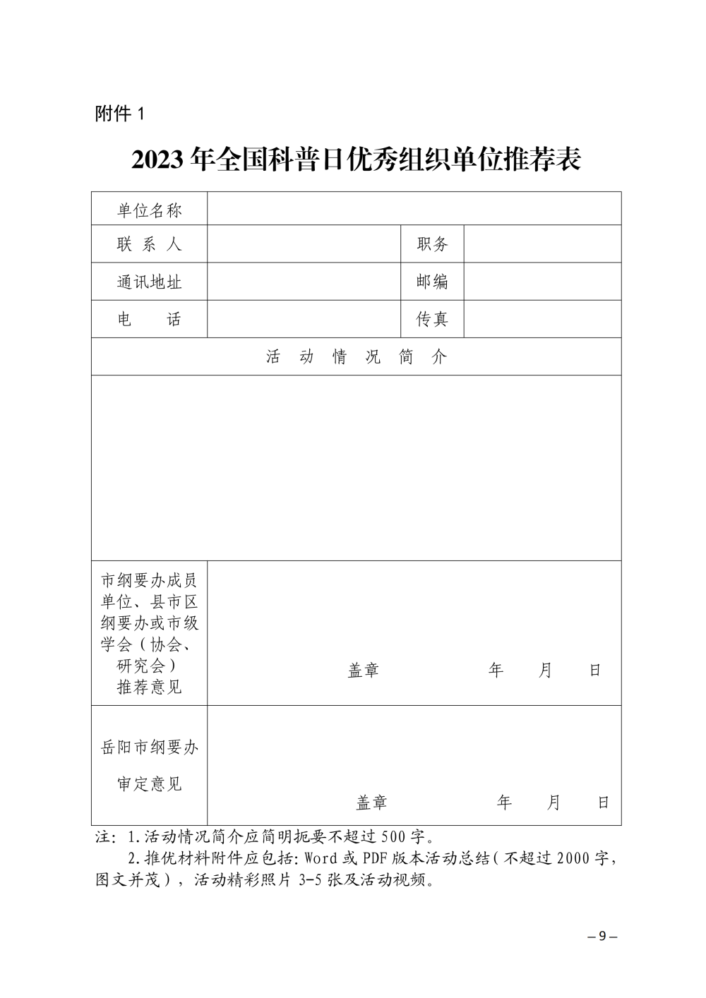 附件1+2023年全国科普日优秀组织单位推荐表.docx