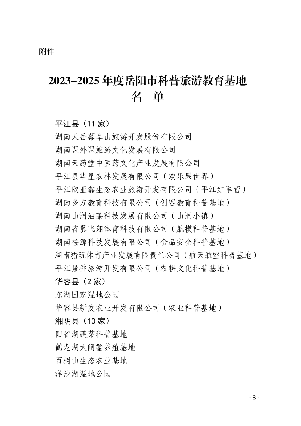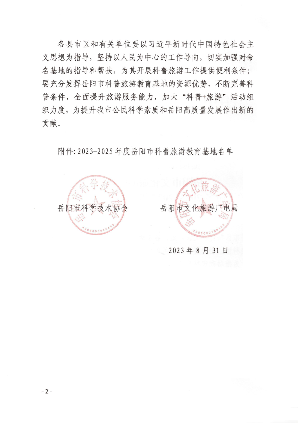 关于命名2023-2025年度岳阳市科普旅游教育基地的通知