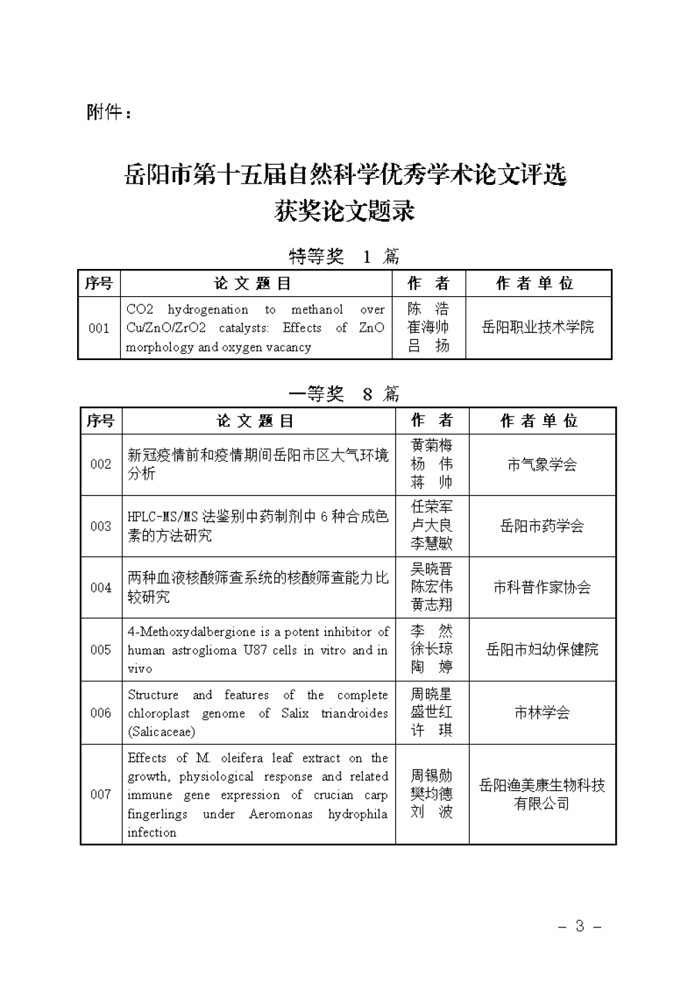关于岳阳市第十五届自然科学优秀学术论文评选结果的通报(定)doc.pdf