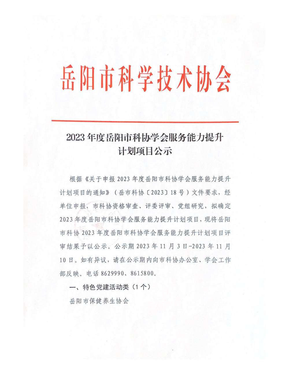 2023年度市科协学会服务能力提升计划项目公示