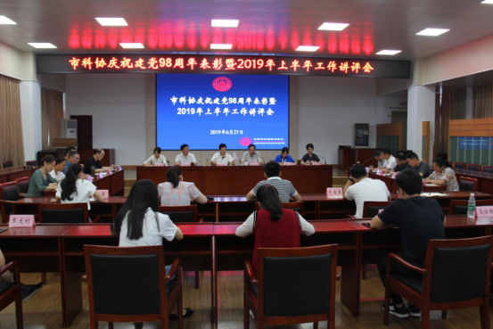 6月27日上午,岳阳市科协召开庆祝建党98周年表彰暨2019年上半年工作讲评会,表彰2019年先进基层党组织、优秀共产党员、优秀党务工作者,总结上半年工作,部署下半年工作。会议由市科协主席徐载满主持。