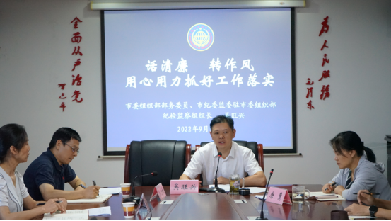9月16日下午,市科协召开清廉机关建设工作推进会,对清廉机关建设工作进行再动员、再部署。市科协党组书记、副主席陶沙岸主持会议并讲话,市委组织部部务委员、市纪委监委驻市委组织部纪检监察组组长吴旺兴到会指导,机关、事业单位全体干部职工参加会议。
