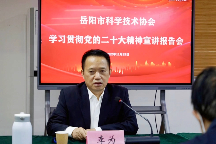 为深入学习宣传贯彻党的二十大精神,11月23日上午,岳阳市科协召开学习贯彻党的二十大精神辅导报告会。邀请湖南省科协副主席李为作专题宣讲报告,岳阳市科协党组书记、副主席陶沙岸主持并讲话。市科协全体党员干部、市科协所属市级学会党支部书记50余人参加会议。