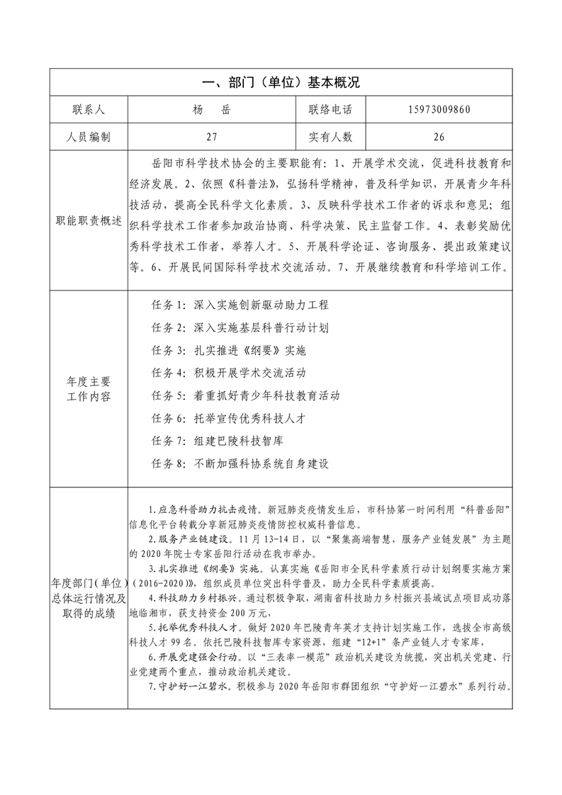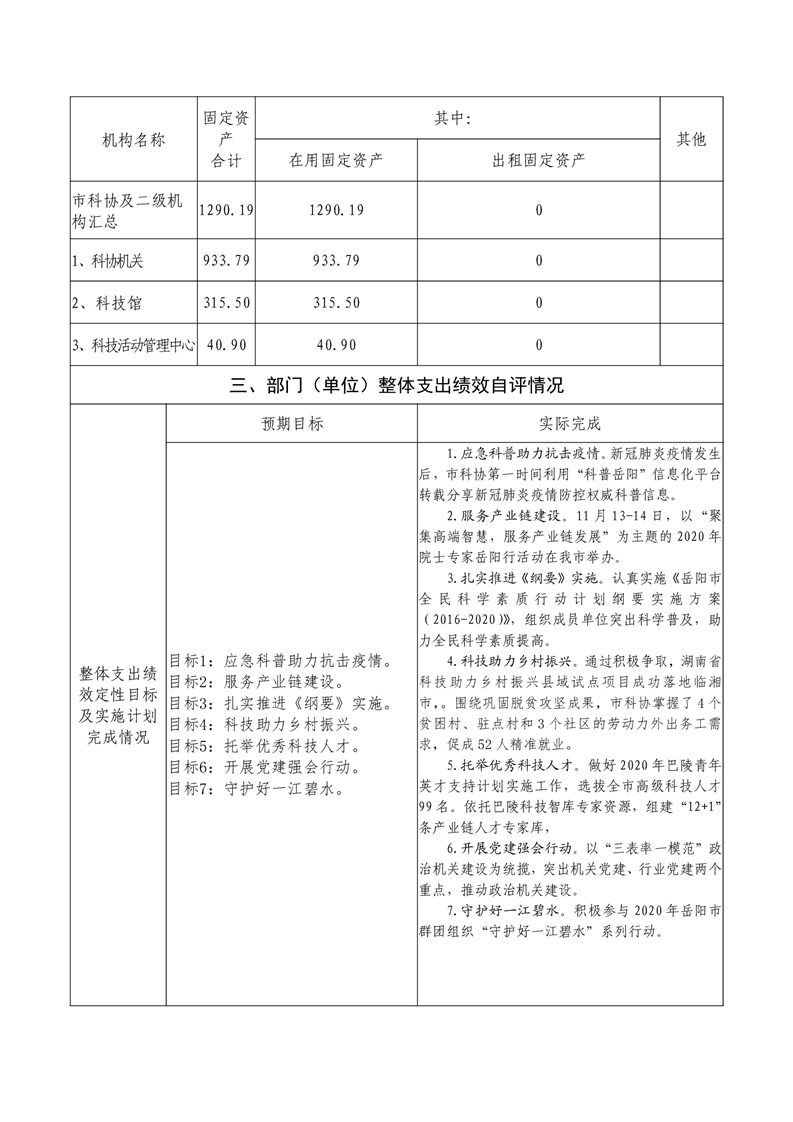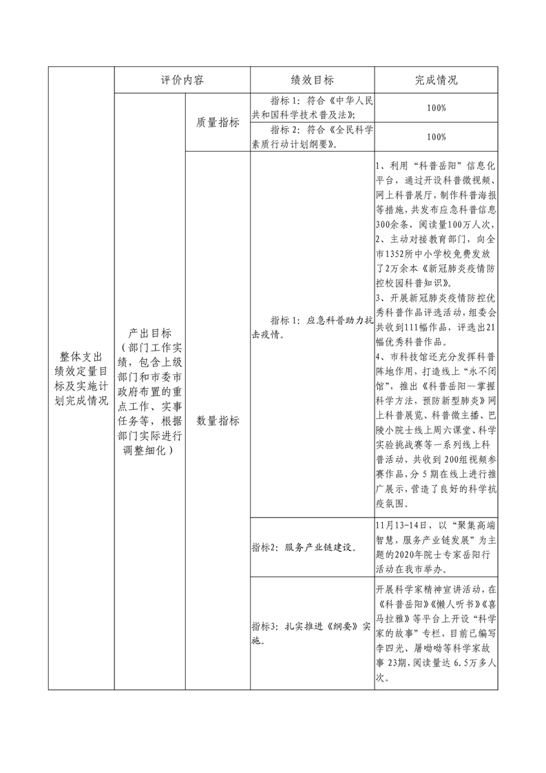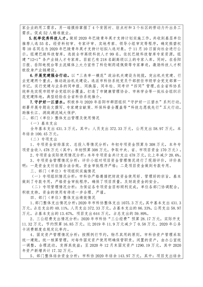 2020年岳阳市度部门整体支出绩效评价自评报告