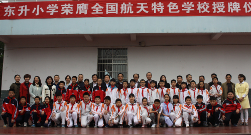 4月12日,中国航天科技集团公司航天育种研究中心主任钦天钧、中国宇航学会副理事长、中国科协航天科普首席传播专家田如森等5位专家莅临岳阳,授予岳阳楼区东升小学 “全国航天特色学校”牌匾,岳阳市科协主席徐载满、副主席傅道德,岳阳楼区政府副区长唐露尧、区政协副主席邓群政及有关部门负责人和东升小学4500多名师生一道,见证了这一历史时刻。