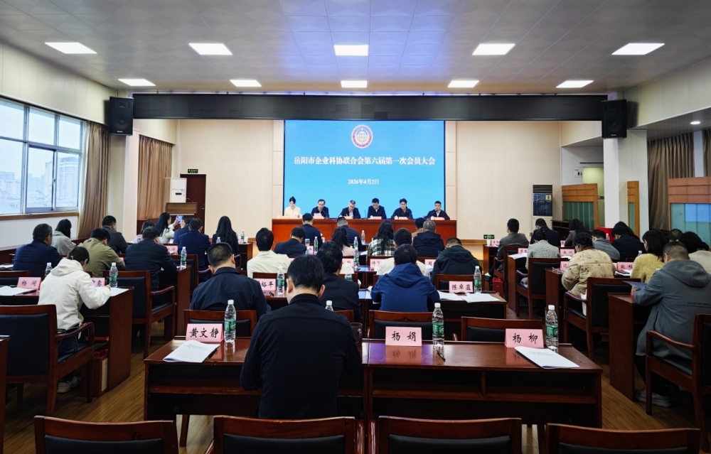 2026年4月2日上午,岳阳市科技创新创业协会第六届第一次会员大会隆重召开。市科协副主席彭岳斌、市中小企业服务中心主任荀志方、省企业科协联合会理事长助理苏理等出席会议。