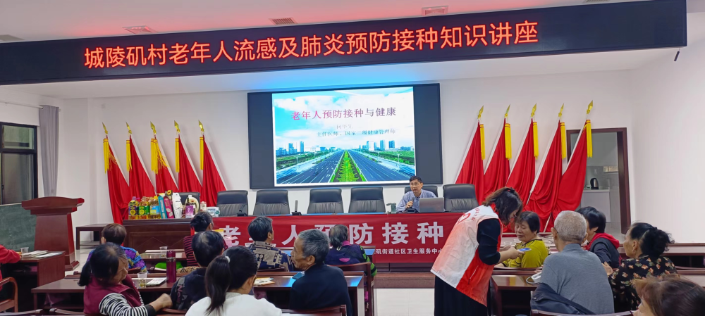 为增强老年人健康意识,提高自我安全防护水平,营造有利于老年人健康生活的社会环境。2023年10月19日,岳阳市健康管理协会走进城陵矶村委会,开展“为科技人员送健康、为企业创新送技术、为乡村振兴送服务”科技志愿服务活动,为城陵矶村的居民送去了一堂“老年人流感及肺炎预防接种知识”讲座。