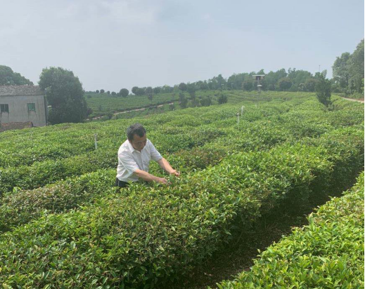 6月8日清晨,华容县胜峰茶场鸟语啾啾,清风拂面。一位长者在茶园中,时而捏着嫩叶观察,时而拨开茶树查看茶树主要害、益虫种群、数量,科学指导茶场持续优化生态环境、打造有机黄茶的生态品牌。