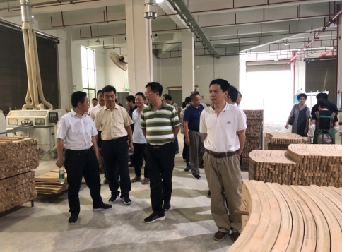 (图为专家们在湖南大为竹业有限公司生产车间考察)