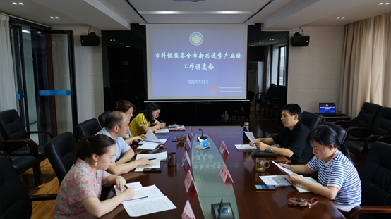 7月8日,岳阳市科协服务新兴优势产业链工作调度会召开,市科协党组书记、副主席陶沙岸,党组成员、副主席唐慧出席会议。